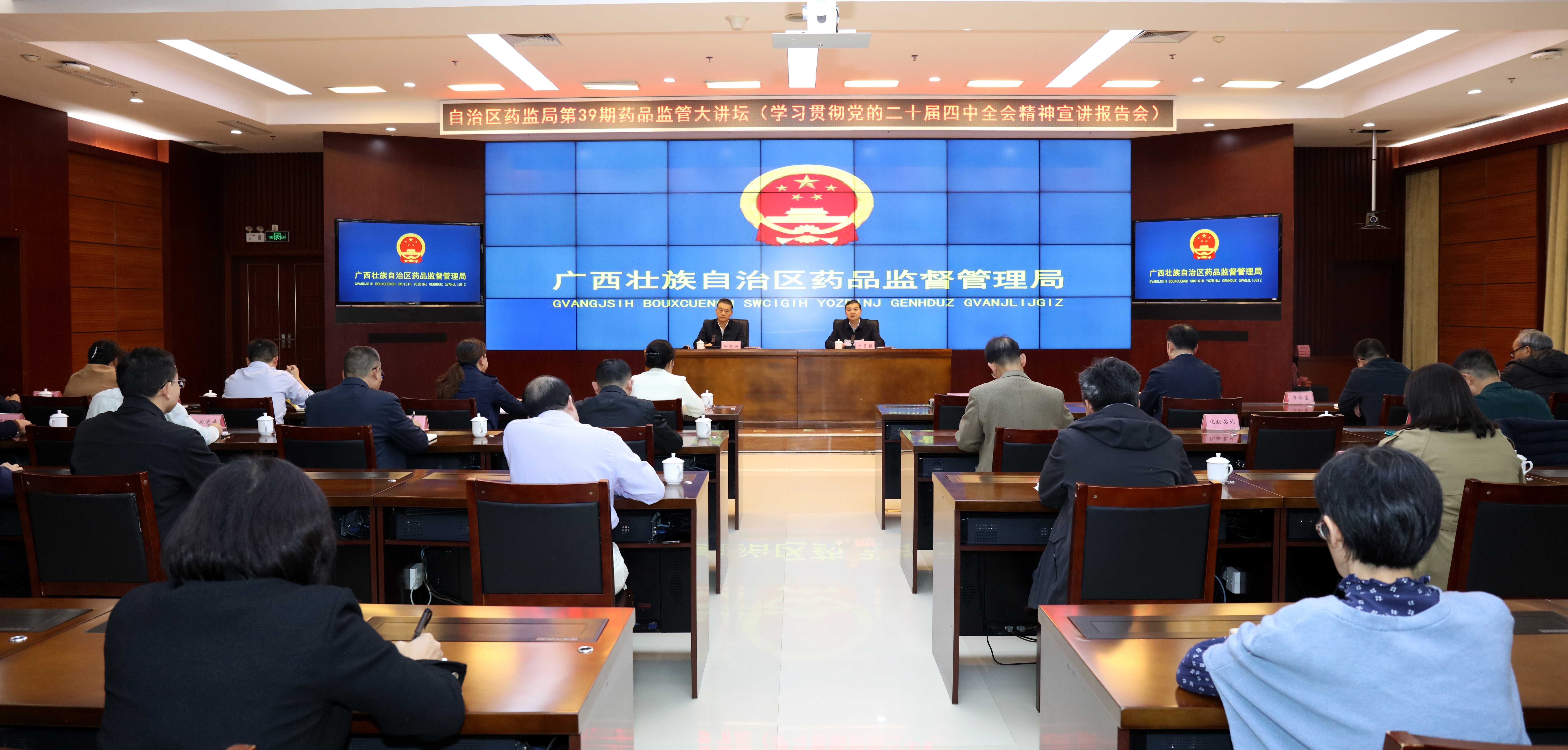 会上,李勇强就贯彻落实宣讲精神提出要求:一是统筹安排学习。深入学习贯彻党的二十届四中全会精神及自治区党委十二届十一次全会精神,要与深入学习《习近平谈治国理政(第五卷)》、习近平总书记关于药品监管工作的重要指示批示精神贯通起来,迅速掀起学习热潮,不断推动学习贯彻走心走深走实。局党组理论学习中心组成员和各处室(单位)主要领导、党支部书记带头学习研讨宣讲、深入调查研究,切实解决群众急难愁盼问题。三是深化学习领悟。通过“三会一课”、主题党日等形式开展集中学习,实现宣贯全面覆盖,引导党员干部读原著学原文悟原理。四是狠抓工作落实。立足药监职责,深度参与铸牢中华民族共同体意识示范区和“一区两地一园一通道”建设,推进“清朗药监”专项行动,以高质量党建引领药监工作和医药产业高质量发展。