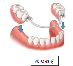 是一种患者可以自行摘戴的假牙,除人工牙以外,还有模拟牙龈的粉色基托和环抱住邻牙的金属卡环。