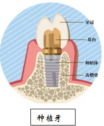 种植牙:是将纯钛金属经过精密设计制成类似牙根的圆柱体或其他形状,以外科手术的方式植入缺牙区的牙槽骨内,再在人工牙根上制作烤瓷/全瓷牙冠。因其牢固美观、结实耐用,被誉为“人类的第三副牙齿”。