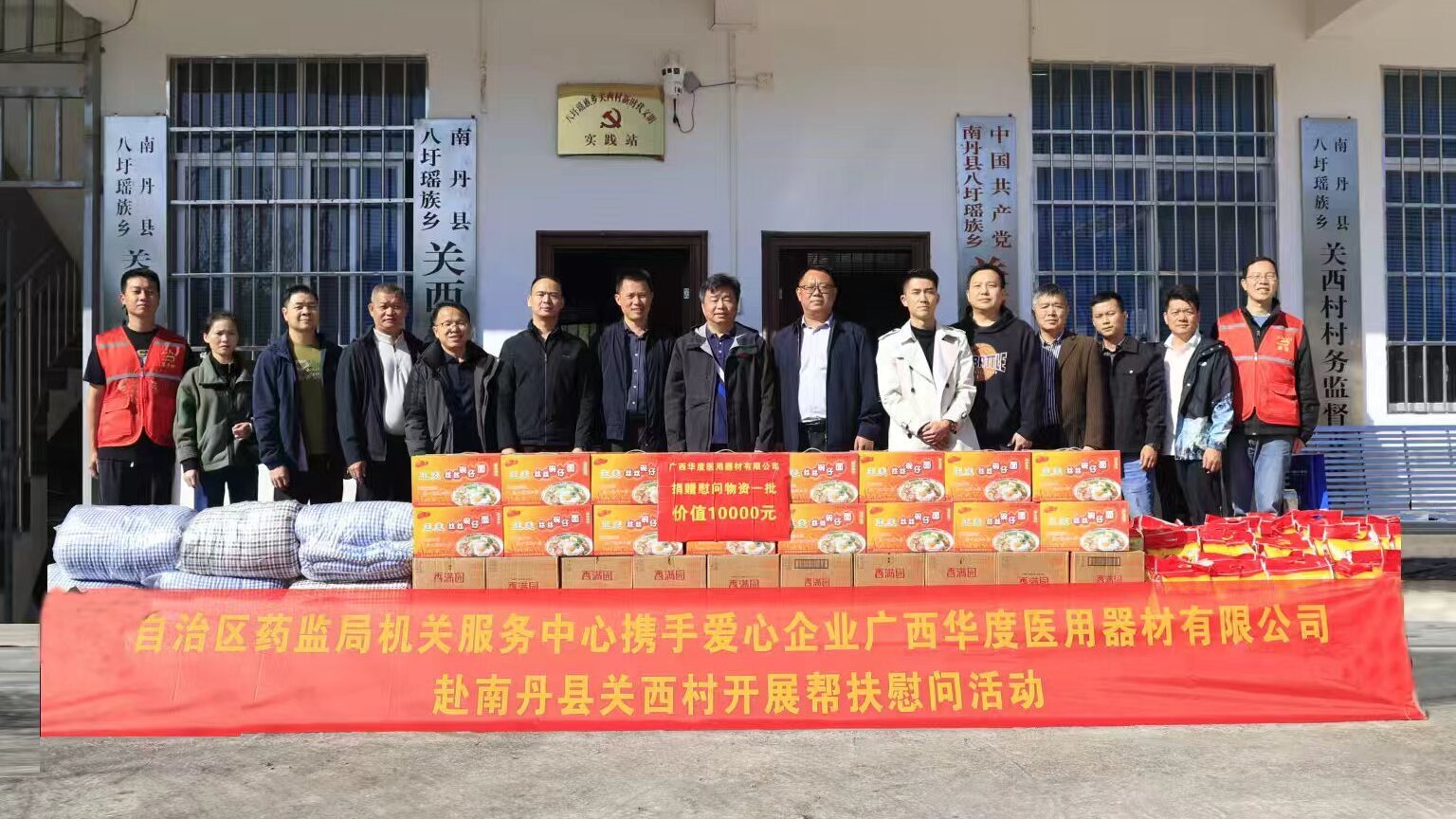11月14日, IM体育平台机关服务中心携手爱心企业广西华度医用器材有限公司,赴河池市南丹县八圩瑶族乡关西村开展“党建引领聚合力,结对帮扶暖民心”主题实践活动。南丹县委常委、副县长许晓宁,县市场监管局、乡党委政府相关负责人参加活动。